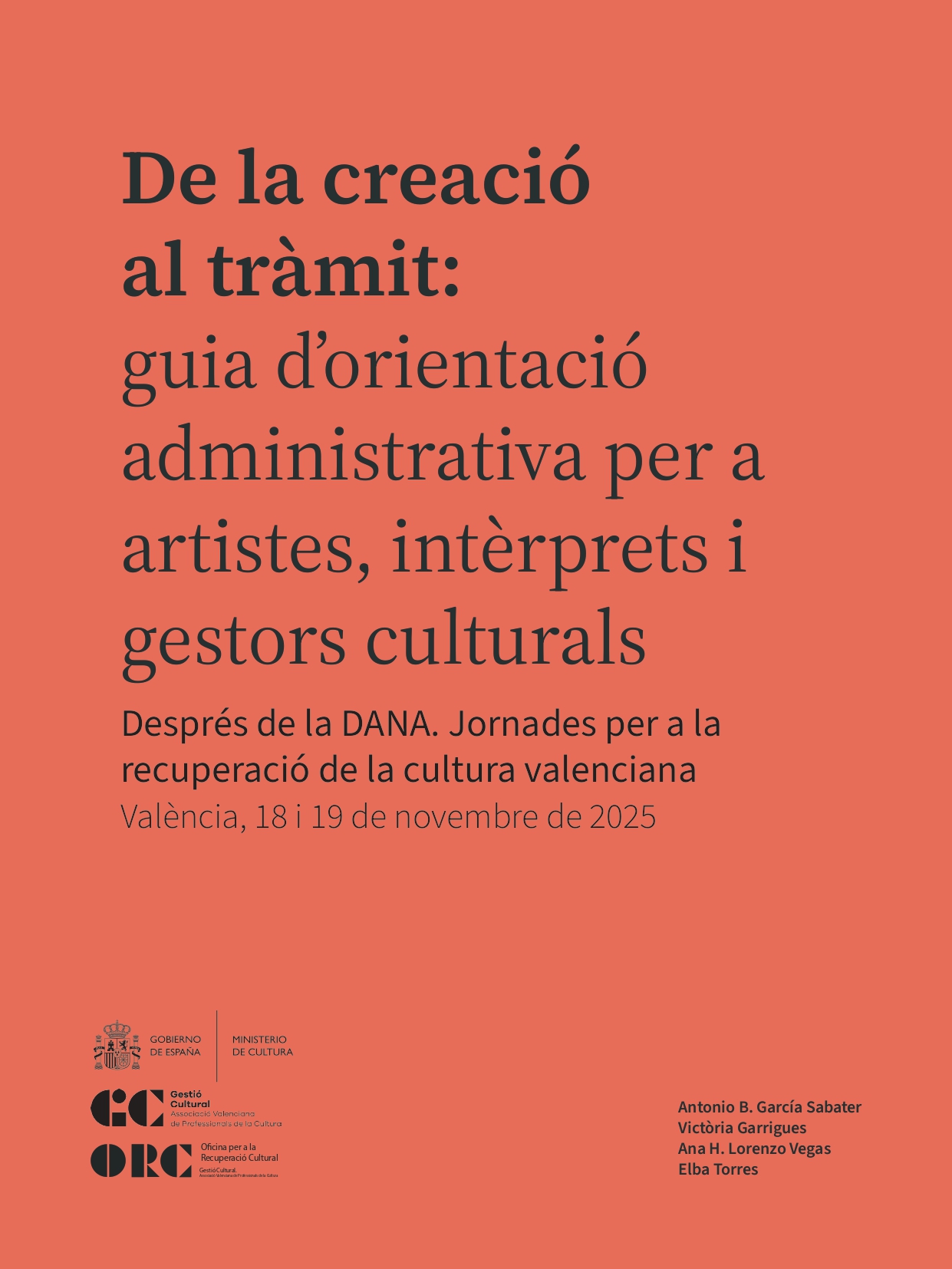 “De la creació al tràmit: guia d’orientació administrativa per a artistes, intèrprets i gestors culturals” és una eina, desenvolupada per Gestió Cultural, Associació Valenciana de Professionals de la Cultura, a través de l’Oficina per a la Recuperació Cultural (ORC), pensada per a reforçar la seguretat jurídica i administrativa del sector cultural valencià.